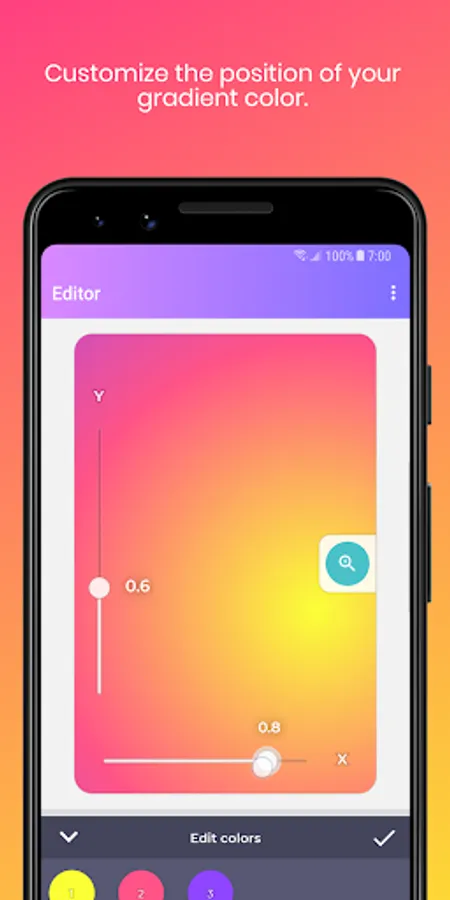 - 🎨 Customize your gradient wallpaper by choosing colors, remove and reorder each color depending on your needs