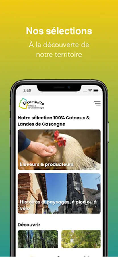 The Escampette application offers you your best activities in Coteaux et Landes de Gascogne!