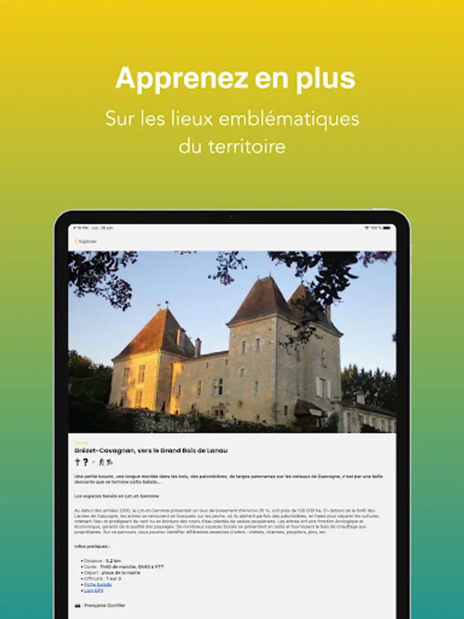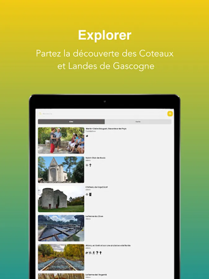 Prepare your trip or improvise your getaway in Coteaux et Landes de Gascogne! Simple and free, all your activities in one app.