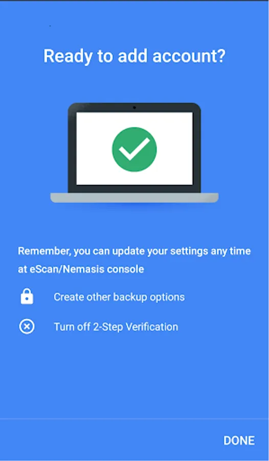 2-Step Verification provides stronger security for your Nemasis and eScan Account by requiring a second step of verification when you sign in. In addition to your password, you’ll also need a code generated by the eScan Authenticator app on your phone.