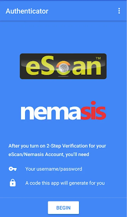 eScan/Nemasis Authenticator generates 2-Step Verification codes on your phone.
