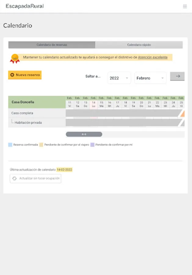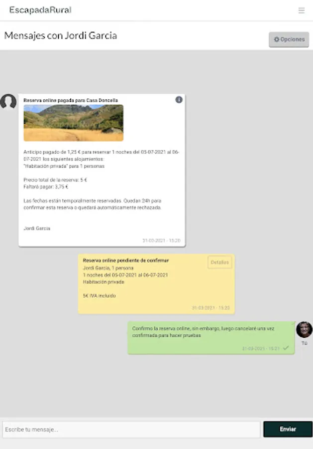 With this application lodgings owners can manage all your reservations and clients as well as manage all your data from your card EscapadaRural.com website