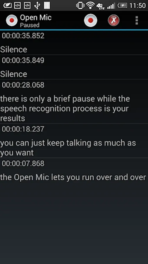Open Mic mode runs an endless loop of dictation!