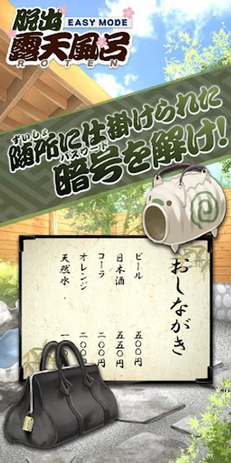 各所に隠された謎を解き明かし、露天風呂から脱出しよう!