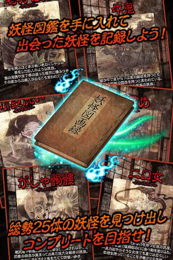 *全25種類もの妖怪が登場! 妖怪図鑑を埋め物語の裏に隠された真相を暴きだせ。