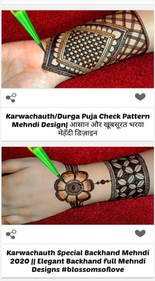 It includes remarkable mehndi design video and new Mehndi design for almost every type of event. This simple henna designs and mehndi designs application contain most recent one of a kind simple mehndi designs and most recent hd mehndi design.