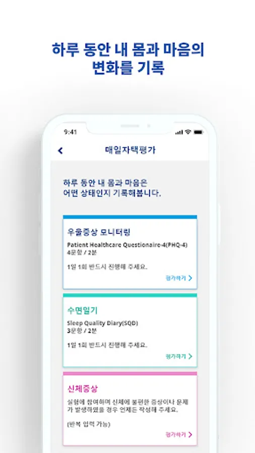 - Depression monitoring and sleep diary are once a day as a way to end the day, and physical symptoms are repeated at any time if uncomfortable symptoms or problems occur in the body.