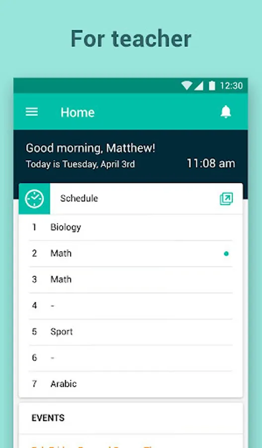 • Easy to set up – once teachers/parents or students log in, each will see their own configuration (Classes, courses ...).