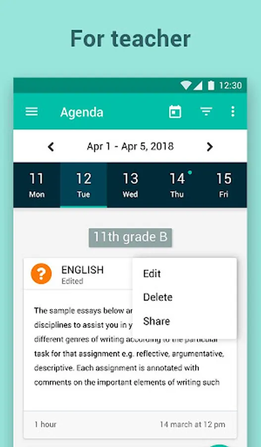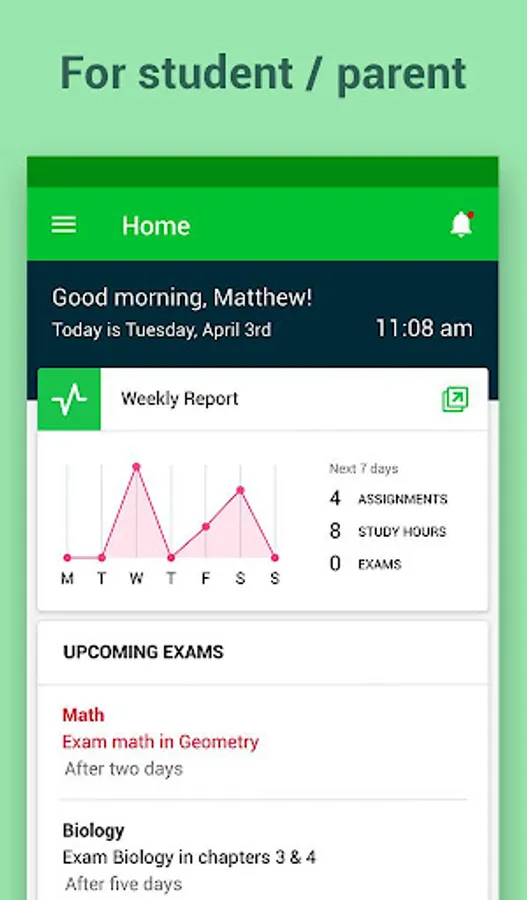 • Improves organization – Students and parents can see all of their assignments and school events on the agenda and calendar pages and all class materials attached to the assignments. Students can view the lessons took in each course in Journal's page.
