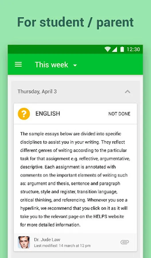 • Saves time – The simple, paperless assignment workflow allows teachers to create, review and grade assignments quickly, all in one place.