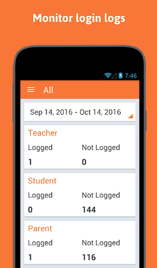 1- View statistics on portal log in logs by user type ( parents, students and teachers).