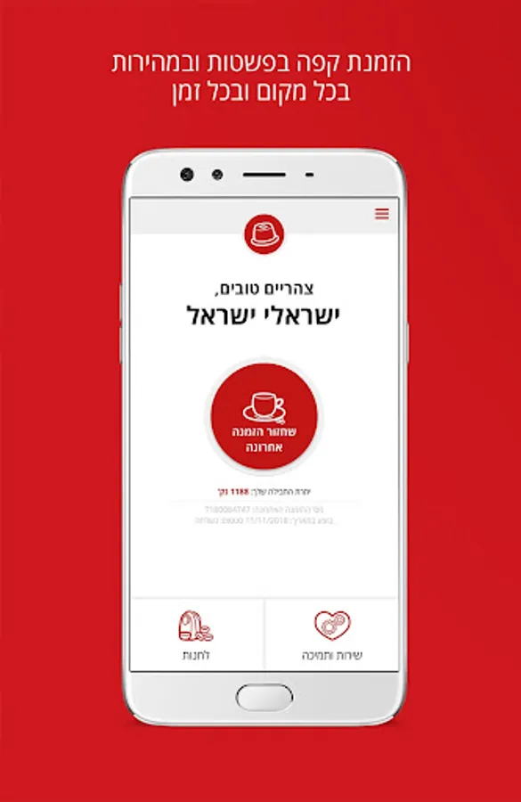 On the main screen you will find a button, simple and quick recovery of the last order. Coffee package customers will see their points balance ordering capsules and accessories. And last updated shipment status.