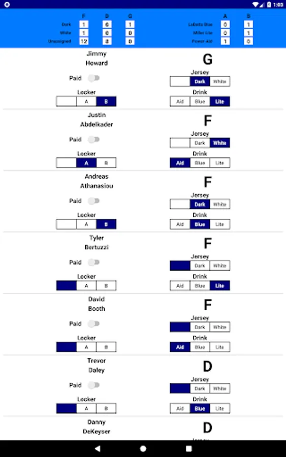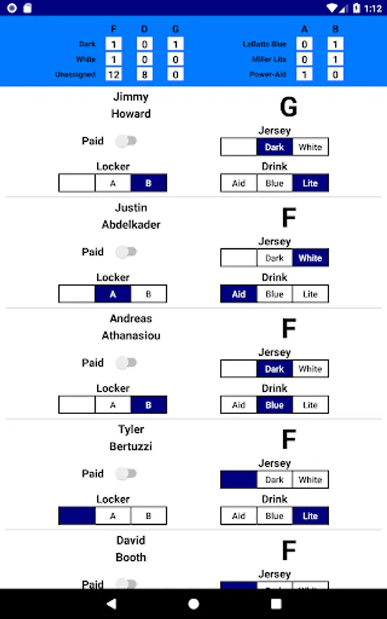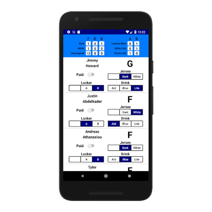Within the app you set your drink preference which will be in the locker room after the skate on ice. The skate will be as evenly divided as possible into two teams, white and dark. A coach is assigned the task of setting up the teams and your jersey assignment is displayed on the skate list.