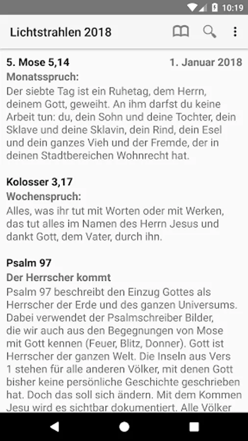 • Every day there is an explanatory text and thought provoking for daily Bible reading, which will give an impulse for everyday life.