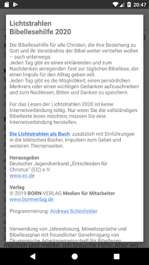 Every day there is an explanatory and thought-provoking text for the daily Bible reading of the Ecumenical Study Group Bible Reading - peppered with personal questions for everyday life.