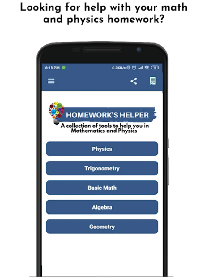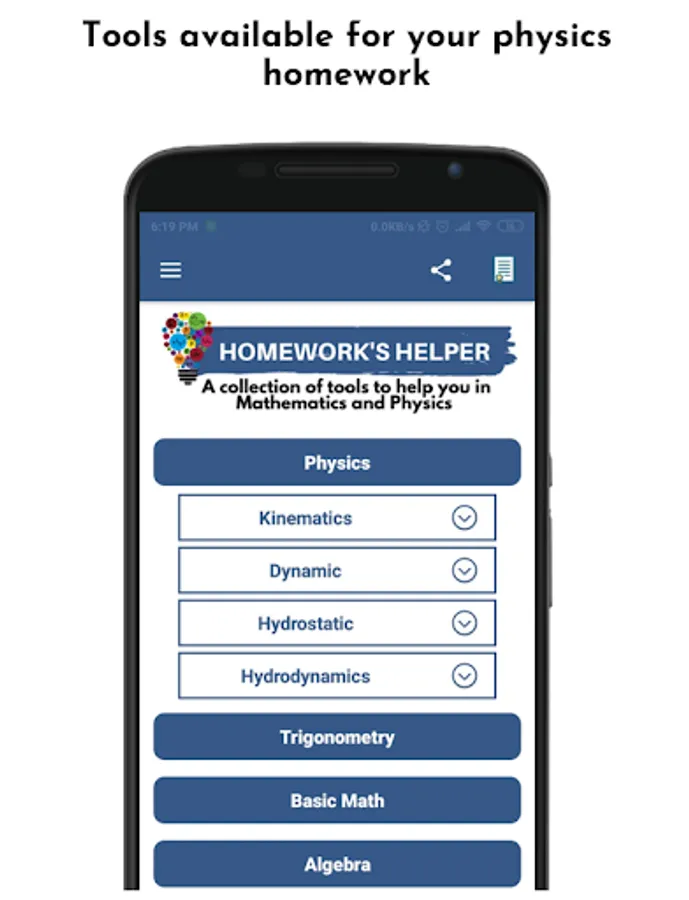 Homework's Helper is a collection of tools that allow you to solve math, physics, geometry exercises and coming soon many other areas