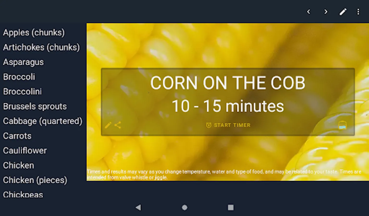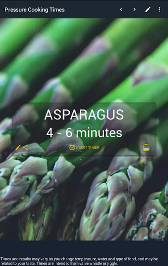 Note this app does not include recipes, it is intended as a quick way to remember times and set timers.
