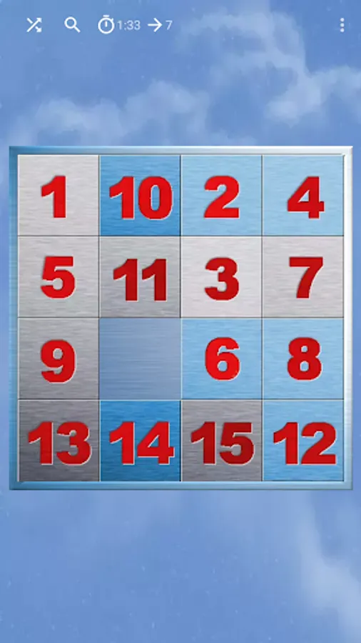 Someone calls this game Gem Puzzle. Others call it Boss Puzzle, Game of Fifteen, Mystic Square, 15-puzzle or just 15. It is a sliding puzzle that consists of a frame of numbered square tiles in random order with one tile missing. Your goal is to place the tiles in order by making sliding moves using the empty space.