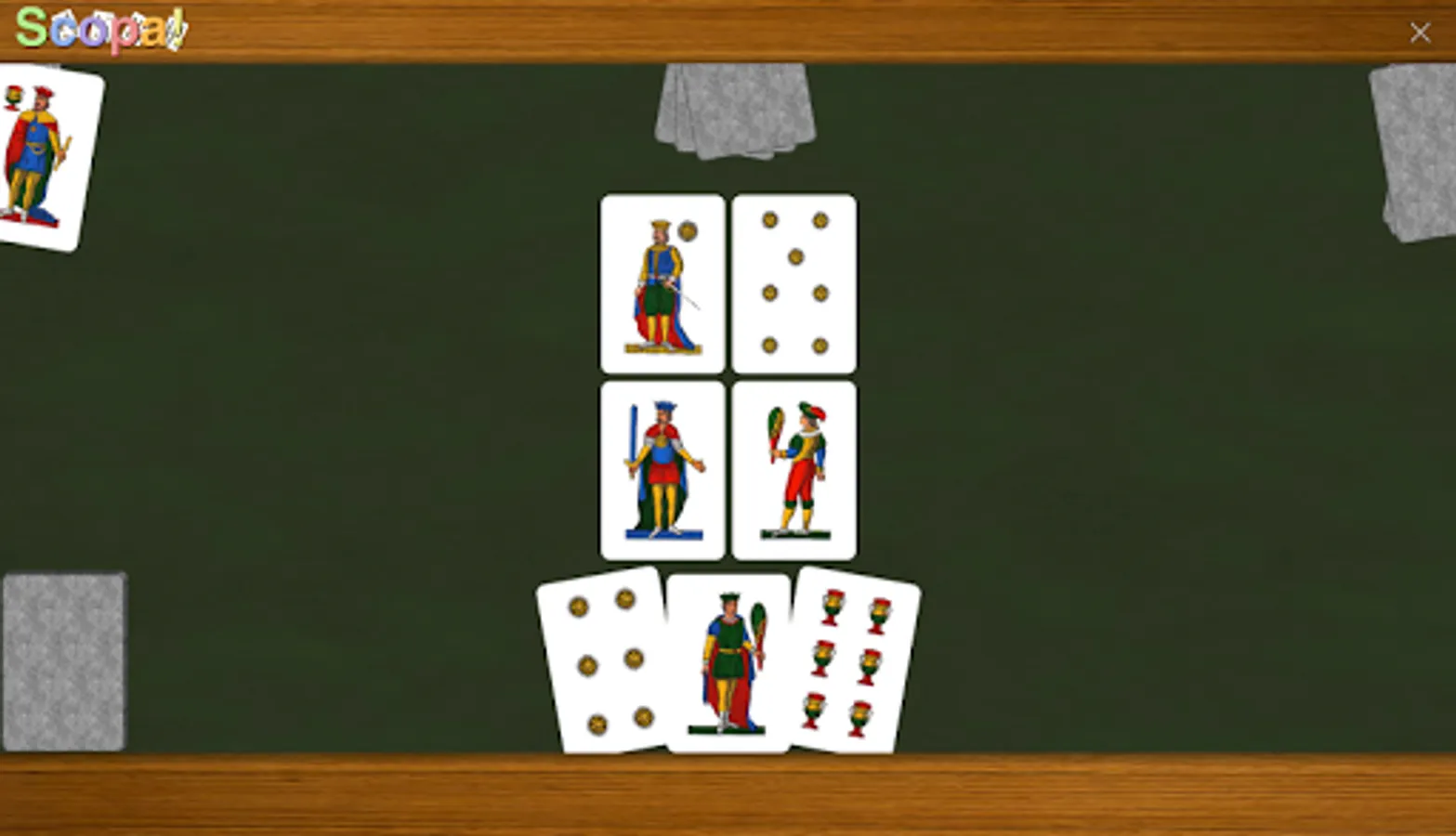 You can use decks from Neaples, Sicily, Milan and more. You may change the backgrounds and the card backs, and even some rules: the best free Scopa card game.