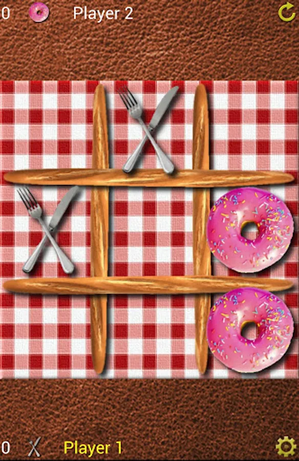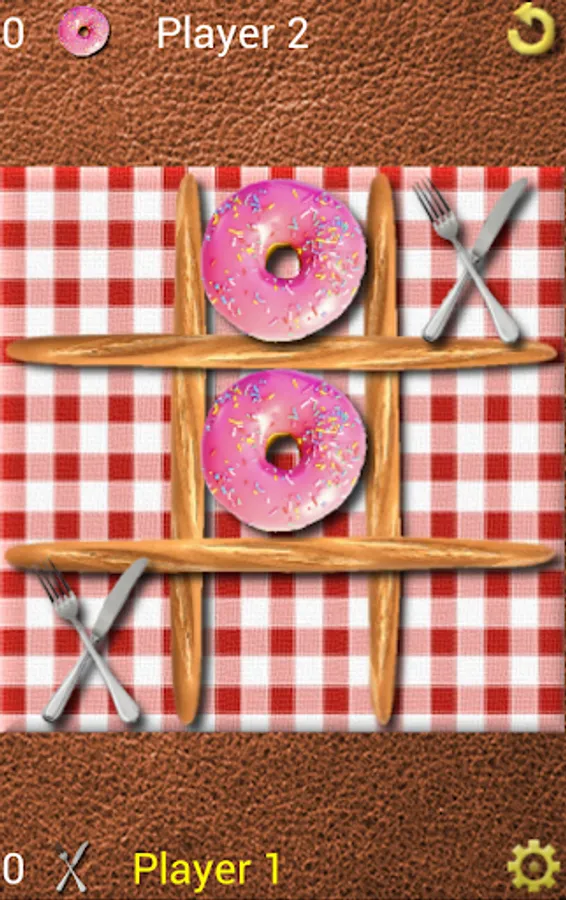 Tic-tac-toe game is also known as Noughts and crosses or Xs and Os; in this version you can play with donuts, football balls, hokey sticks, baguettes and so on...