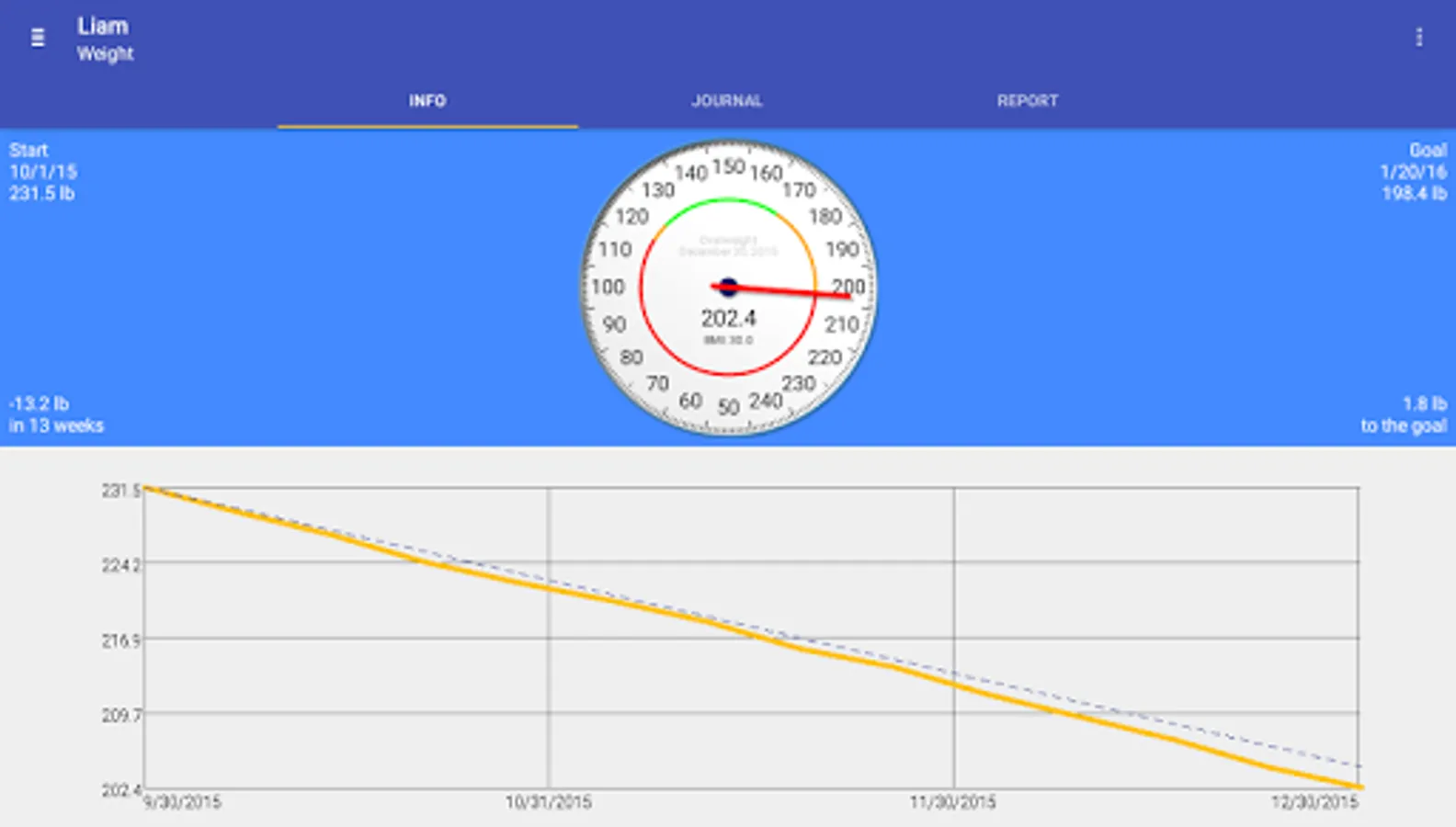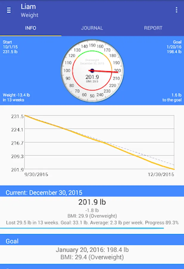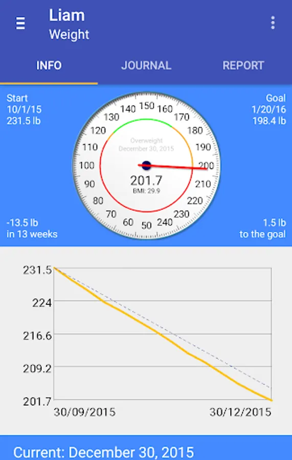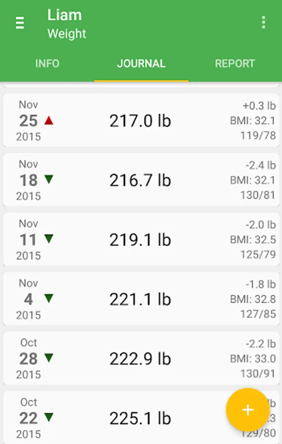 You can associate your blood pressure and a note to each measured weight. You may also track multiple profiles, or use different profiles for different goals.