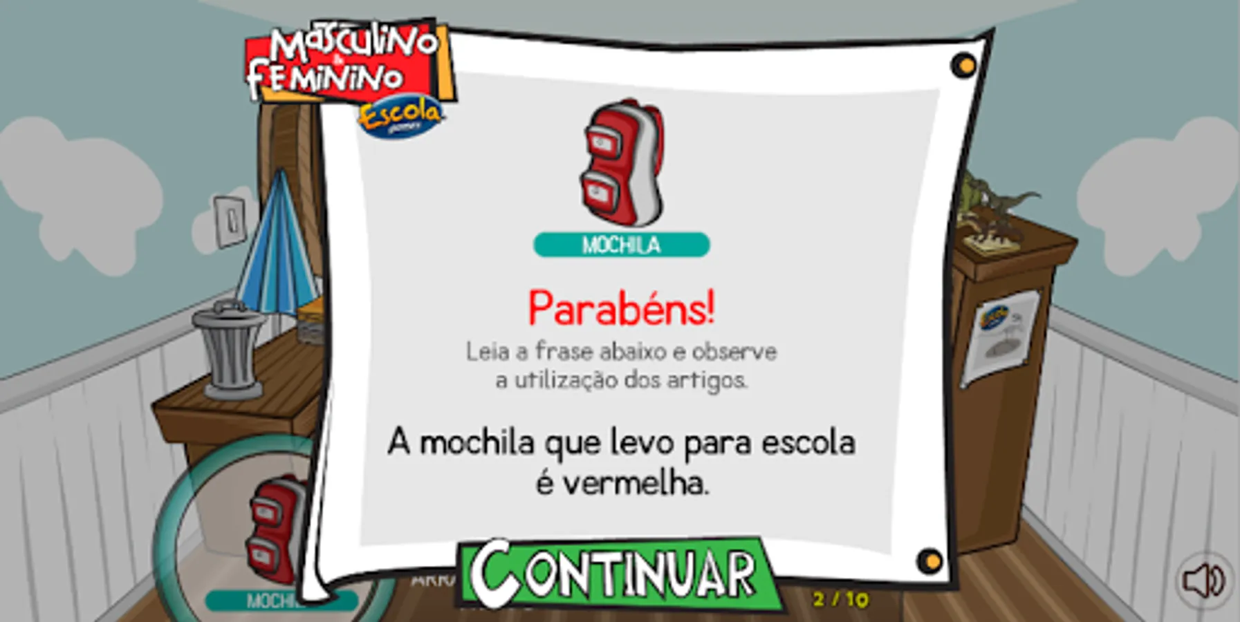 With each attempt to save an object, you will be tested. Answer correctly to which gender each word belongs and show that you are a beast in Portuguese!