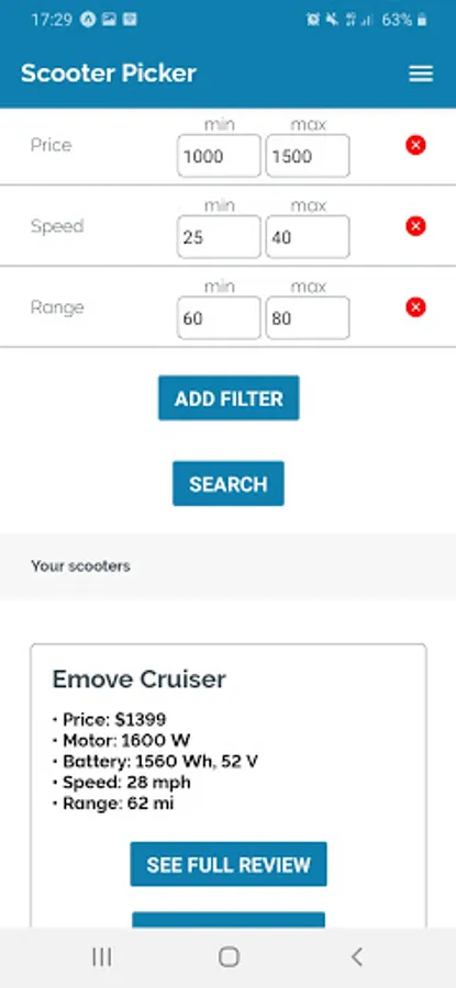 Whether you already own an electric scooter or you are looking to buy one, the app offers many buying tools and resources: