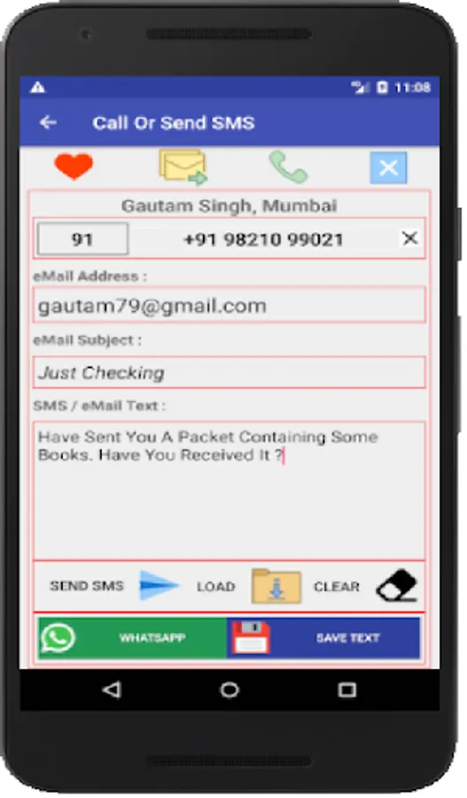 ESCORT Uses A Common Screen for Phone, SMS, eMail & Whatsapp. Message Texts Can Be Saved and Recalled For Future Use. A Whole Section Deals With Message Texts.
