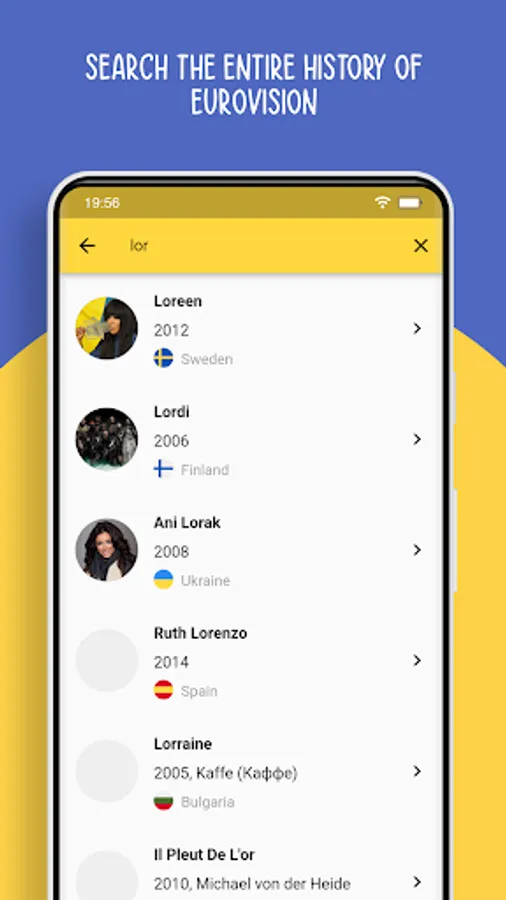 Super fast search allowing you to search the entire history of the Eurovision Song Contest!