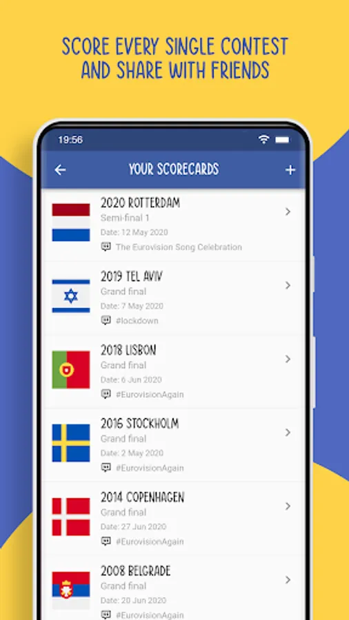 Score any Eurovision Song Contest, save your scorecards to your profile and share them to social media!