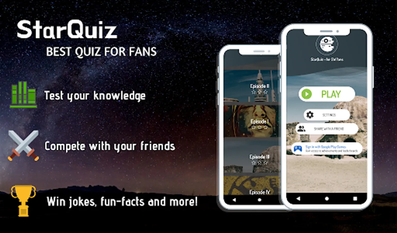 This is an unofficial quiz from fans - for fans. You can find here over 550 tricky and challenging questions. In this StarQuiz you can also compete with other players and your friends trying to be the best on the world!