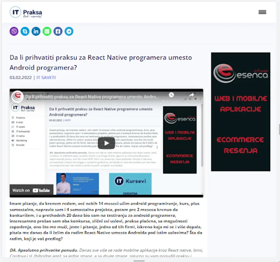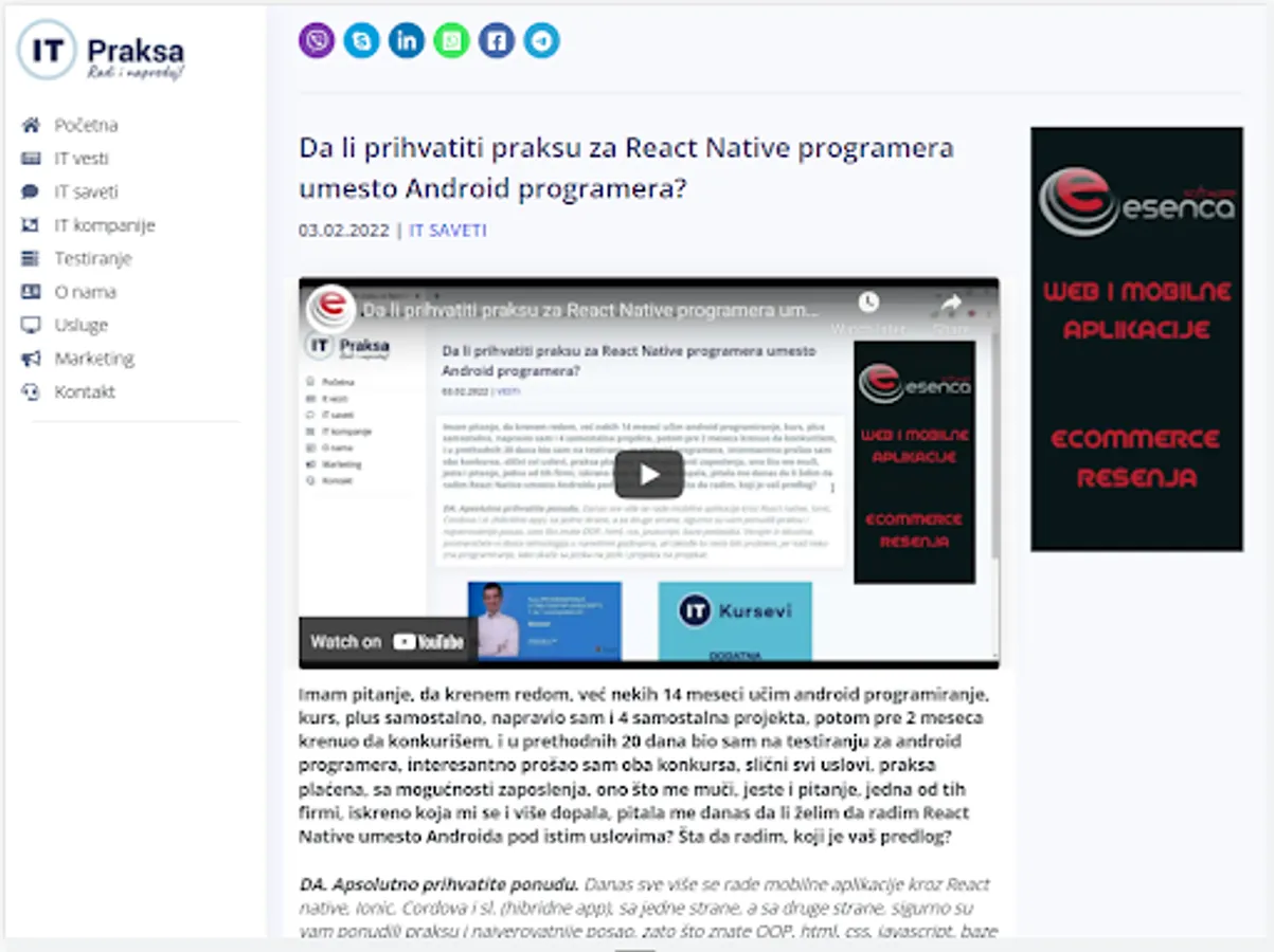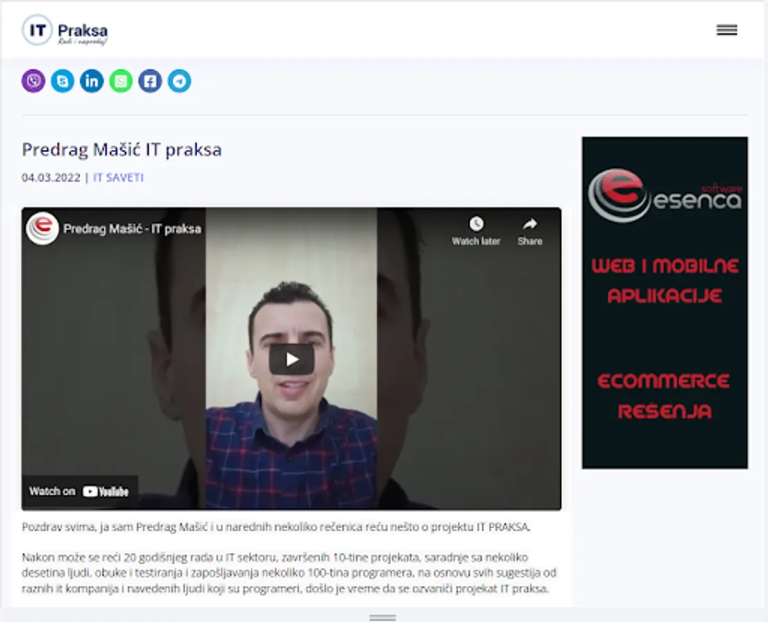 It praksa je mobilna aplikacija koja pomaže IT praksistima i početnicima u programiranju tako što im daje razne savete, preporuke, analize, primere testiranja na razne programse jezike i primere intervjua, kao i oglase za praksu u IT sektoru.
