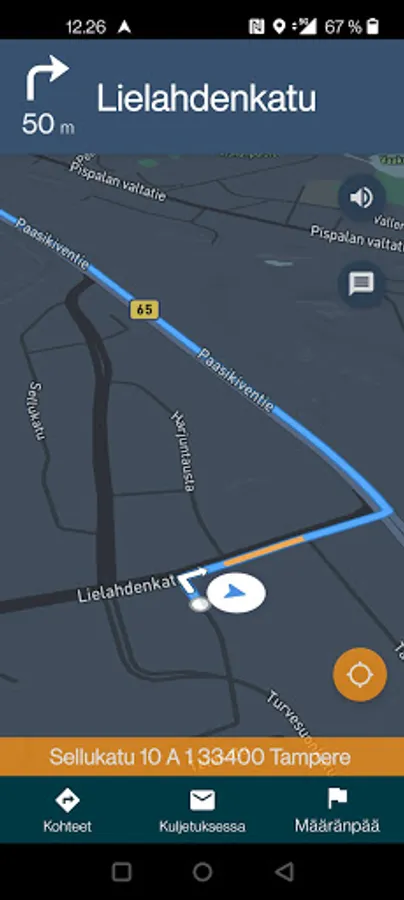 Sovellus laskee reitin automaattisesti ja kommunikoi kuljetuksen tilaajan, kuljettajan sekä kuljetuksen vastaanottajan kanssa.