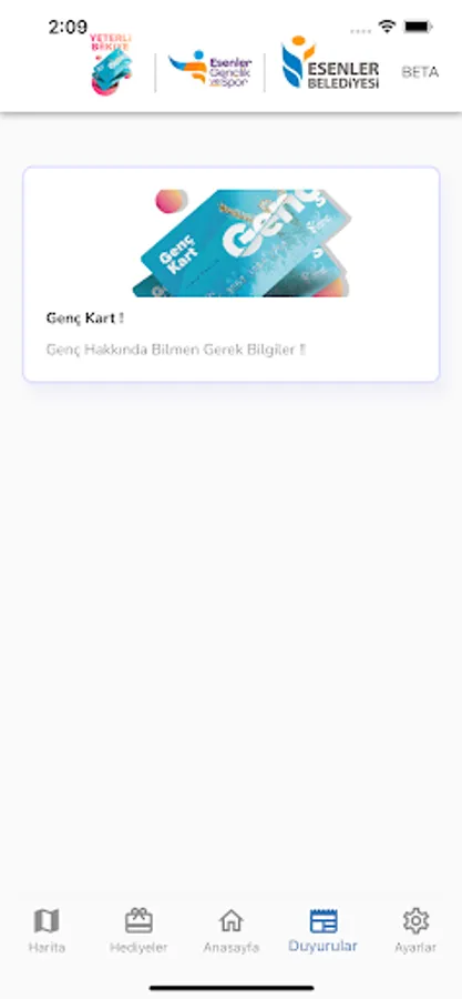 Young Card is an application that aims to bring together young people between the ages of 14-29 living within the Esenler border in social and cultural activities. You can collect points and receive rewards by participating in events organized with the Genç Kart application, which you can download to mobile devices with IOS and Android operating systems.