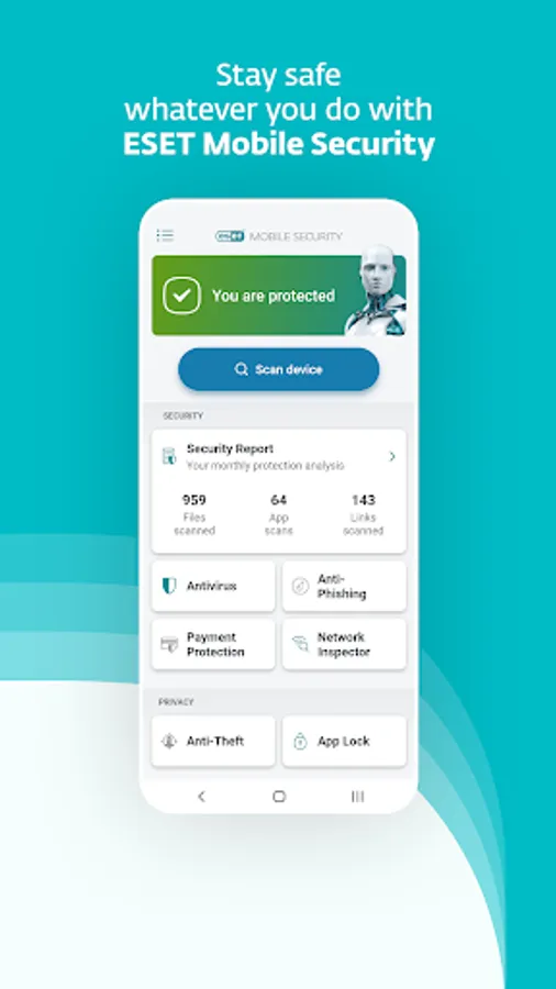 ✓ Anti-Phishing – uses the ESET malware database to identify scam websites and messages