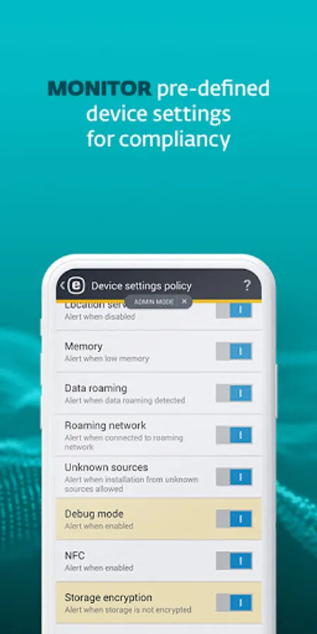 ✓ Execute essential security policies across mobile devices, including advanced password settings or auto-lock behavior with Device Security