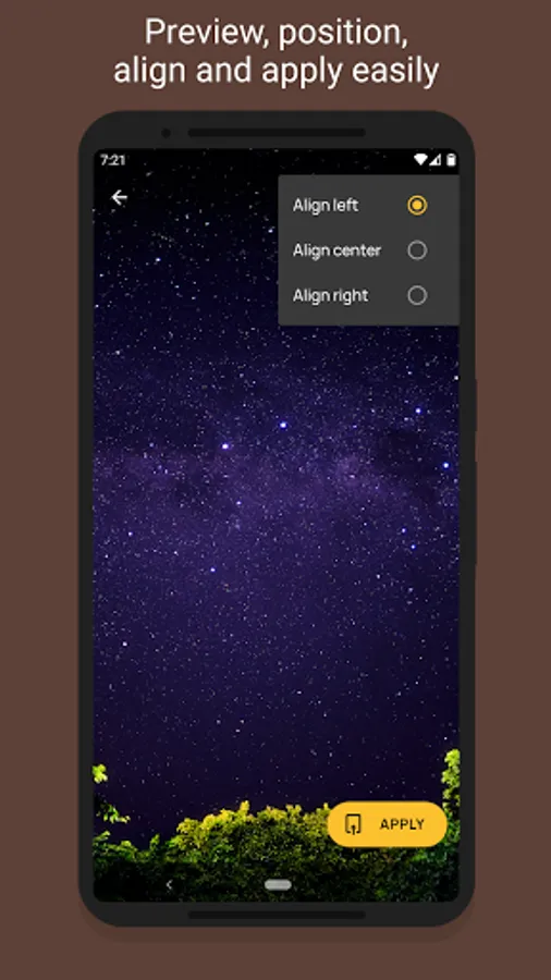 • Correctly apply wallpapers to any setup with proper left, center & right alignment options.
