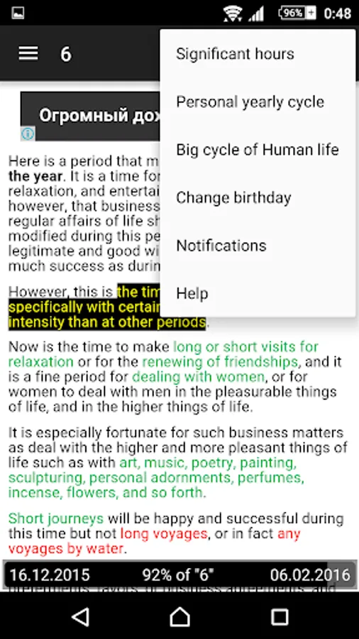 2. Input the date of your birth in "LifeCycles" (if you want change the birthday, please, reinstall the program)