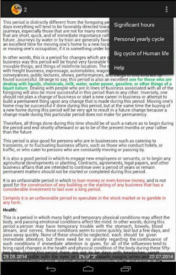 2. Input the date of your birth in "LifeCycles" (if you want change the birthday, please, reinstall the program)