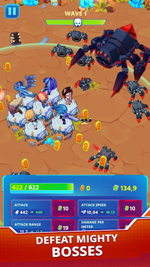 Base Astro Defense (B.A.D) is an idle tower defense game where you take the role of an leader of the space heroes who should defend their base to discover new mysterious planets. Defeat is a crucial part of the game, collect credits, new characters, upgrade your base and heroes.