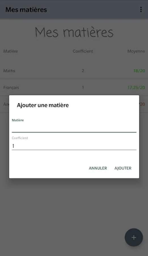 The calculated average consider material coefficients, but also coefficient of each of the recorded marks.