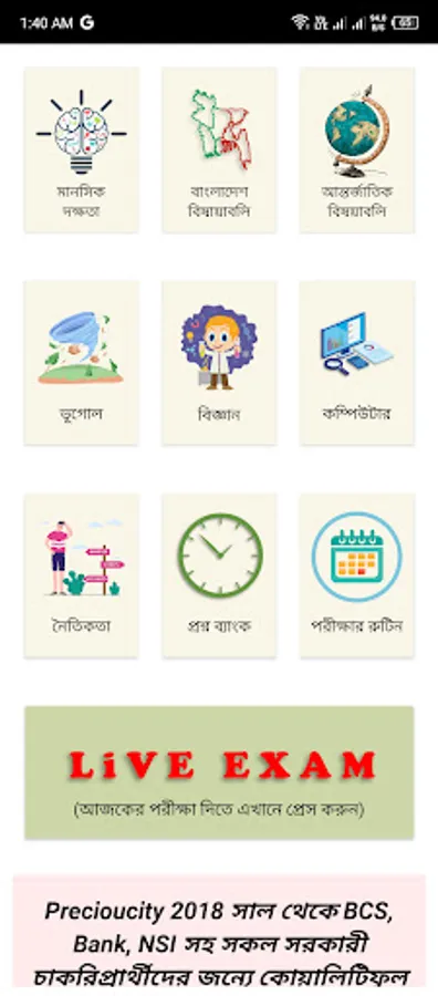 # Question Bank: The app provides question banks (Job Solutions) with solution covering various topics related to BCS and other Govt. jobs.