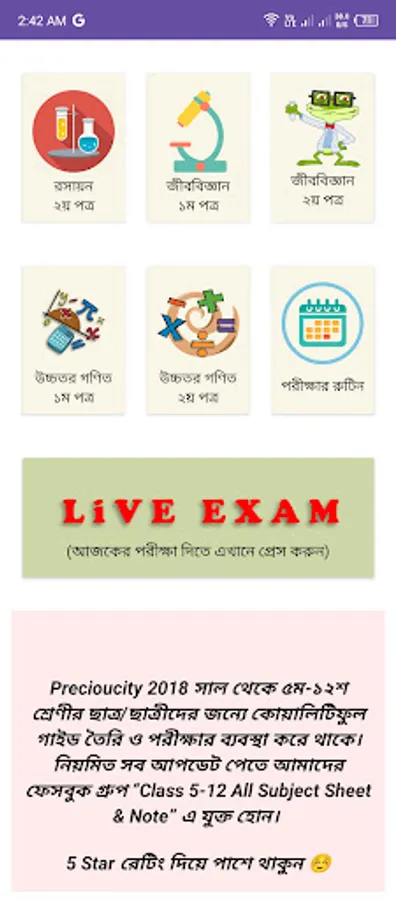 In our other apps, we provided all the necessary subjects like Bangla, Byakoron, Mathematics, Physics, Chemistry, English For Today, English Grammar, Social Science, Soil Sciences, Biology, Higher Math, Fine Arts Book, ICT, and many more. But in the Higher secondary app not all the books are available. All the books are issued by intermediate and secondary education boards Bangladesh. No guide book or notes are added in this app.