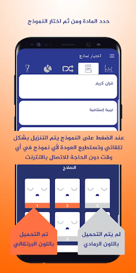Through the application of 912, you can review and review models for ministerial exams and their model answers (for the third secondary and ninth basic classes) in different and interactive ways and methods: