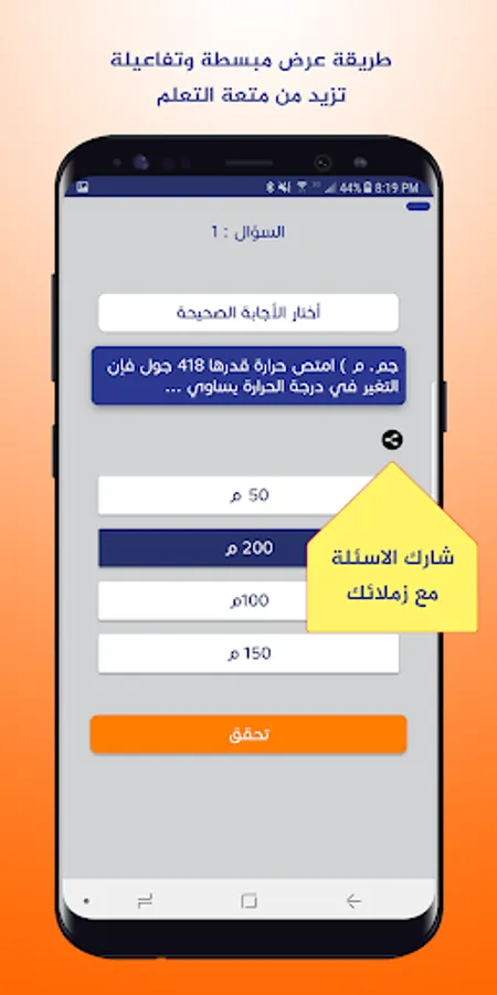 B- The 912 application contains more than 200 forms of ministerial exams for the ninth grade students with its model answers, which include more than 4000 ministerial questions.