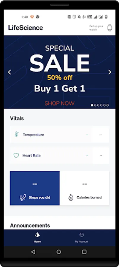 LifeScience app helps Employees track and measure their productivity and fit to work status. The app has a notification display allowing Employees to stay updated of company announcements