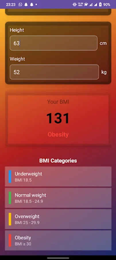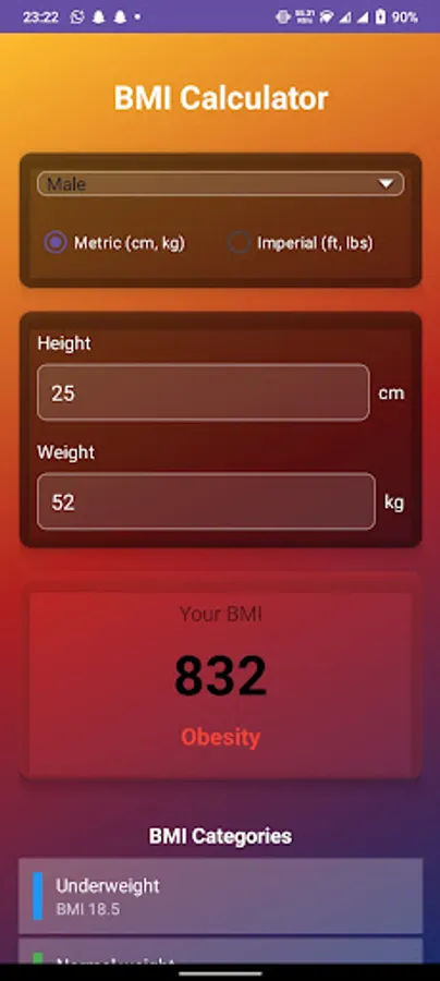 Health Category Display – See if your BMI falls in Underweight, Normal, Overweight, or Obese range.