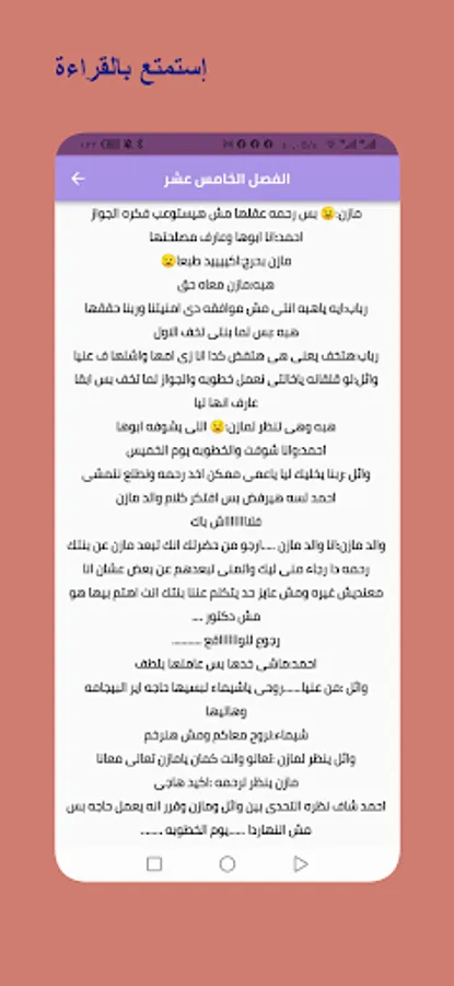 This application is characterized by being easy to browse and read. You can also share the application with friends. Easy and comfortable reading and writing. Easy navigation between the chapters of the narrator.