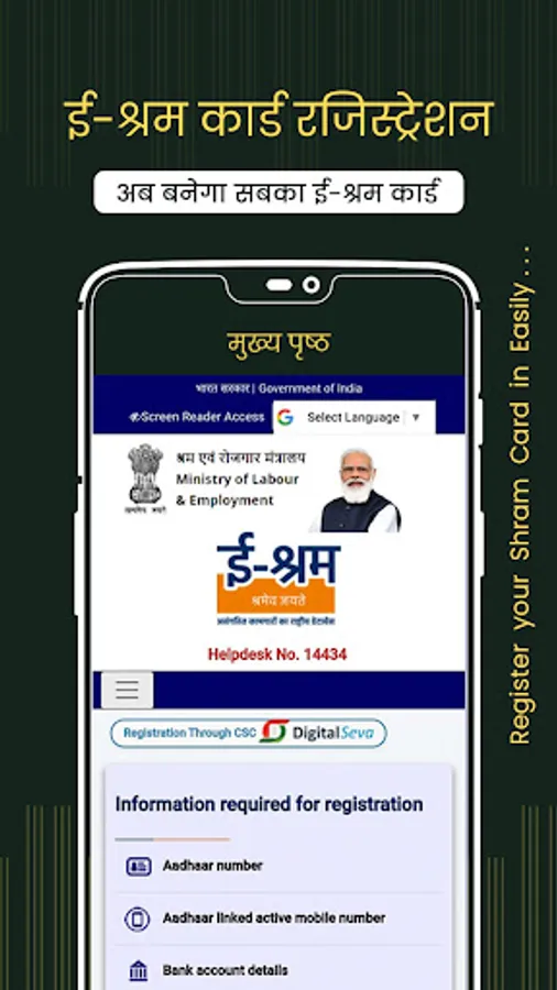 e Shram card registration is very simple to use and get your e-shram card.