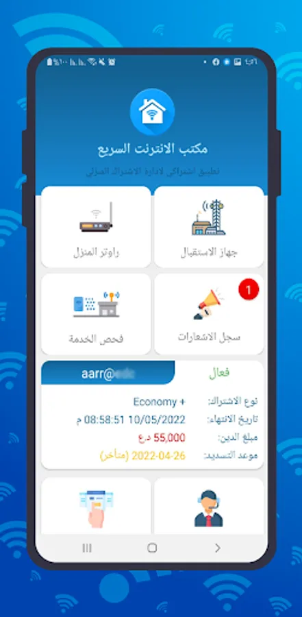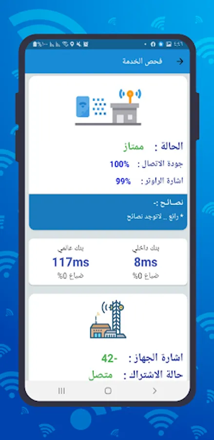 The Iraq subscription application is a link between you and the agent to manage the home Internet subscription yourself without the need to contact technical support or maintenance, where the nano signal is read, the router code is changed, the broadcast name is hidden, the subscription status is followed up, and the service status is checked completely and easily.